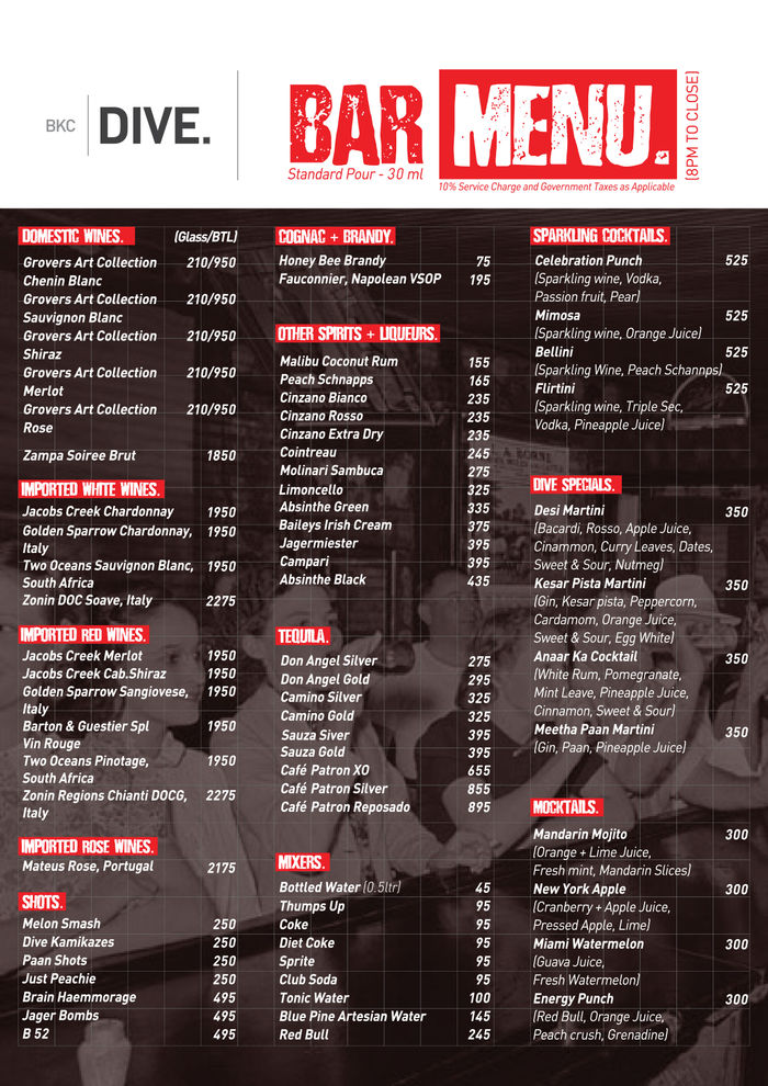 Bkc Dive Menu - Menu to be posted here (menus will be subject to change).