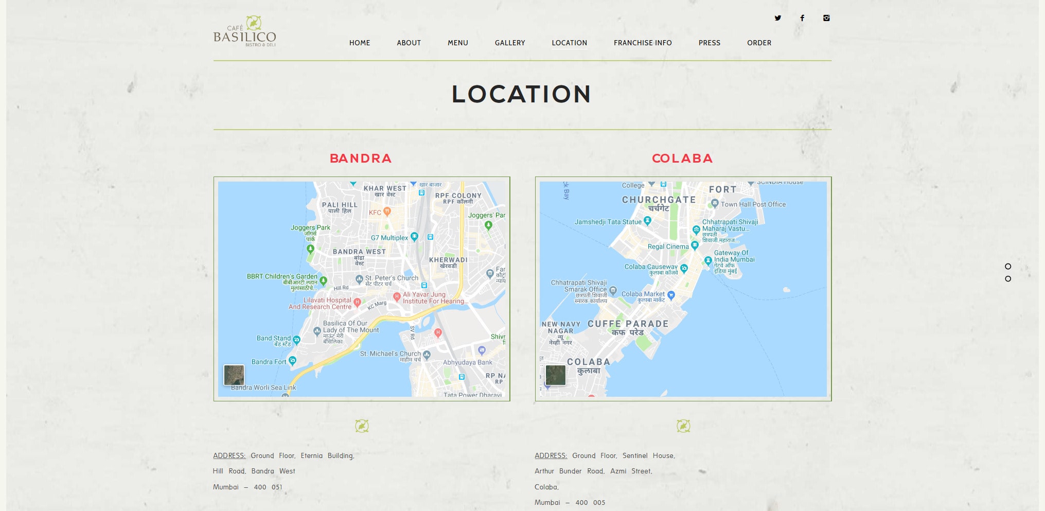 Cafe Basilico Bandra Menu - Order online reservations specials events contact us.
