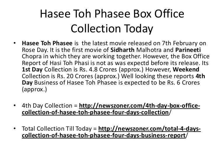 Hasee Toh Phasee Box Office Collection Total : Hasee toh phasee has collected rs 18.5 crore net.
