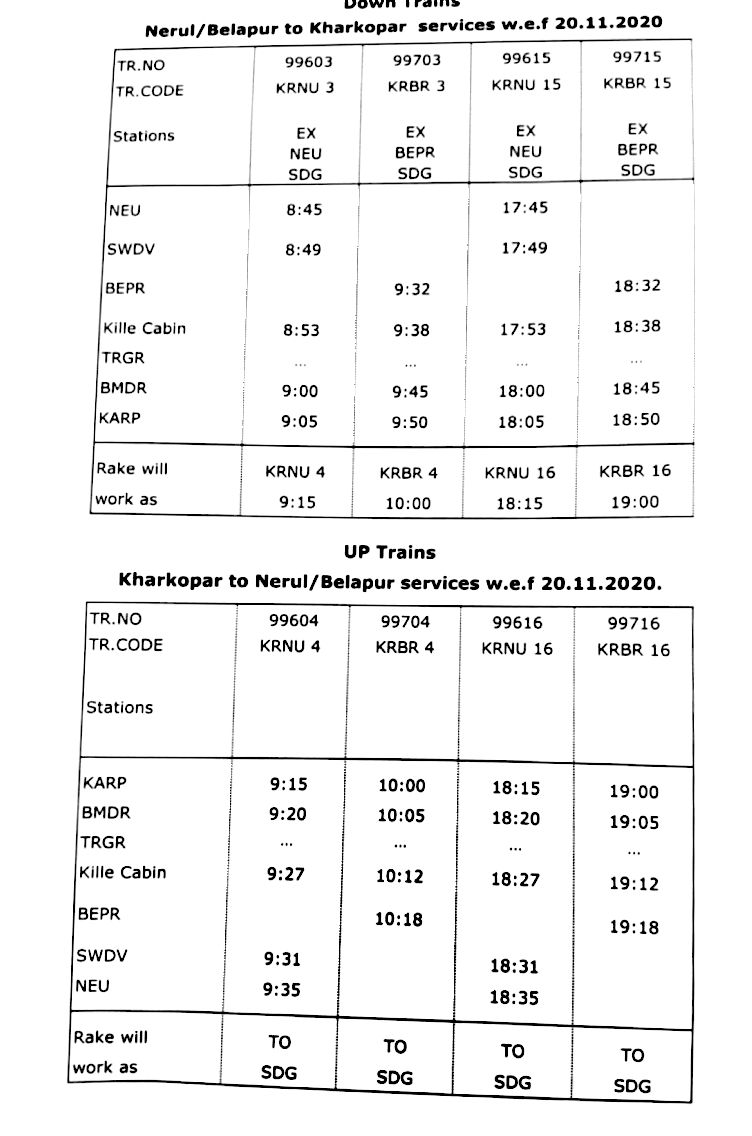 Nerul To Kharkopar Train Time Table : Please enter few characters of train name or few digits of train number.