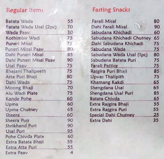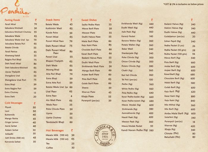 Panshikar Dadar Menu - Recommended by raul dias and 3 other food critics.
