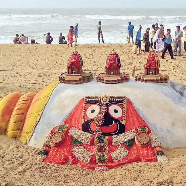 Sand Artist Puri / The exhibition, which was opened by two foreign tourists last week, seeks to spread.